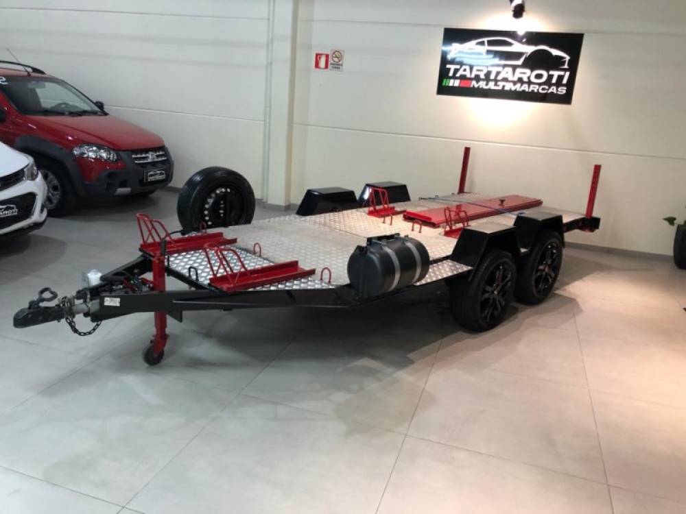 Lindo reboque de transporte aberto ano 2014! Capacidade para 4 motos de grande cilindrada ou 2 quadriciclos, rodas aro 16 do Vectra Elegance, step novo nunca usado, dois compartimentos (um para água e outro para sabão).